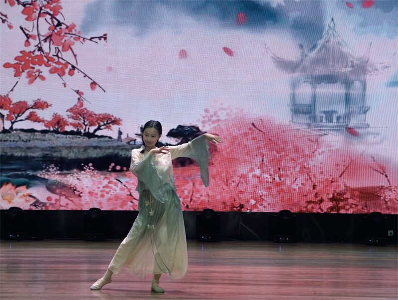 最后,初二(8)班王思薇同学以古典舞《春颂》压轴出场。她的舞蹈柔美中蕴含力量,动作行云流水,仿佛春风拂柳、万物复苏,生动诠释了对春天的礼赞与对生命的歌颂,为整场比赛画上了优雅而圆满的句点。