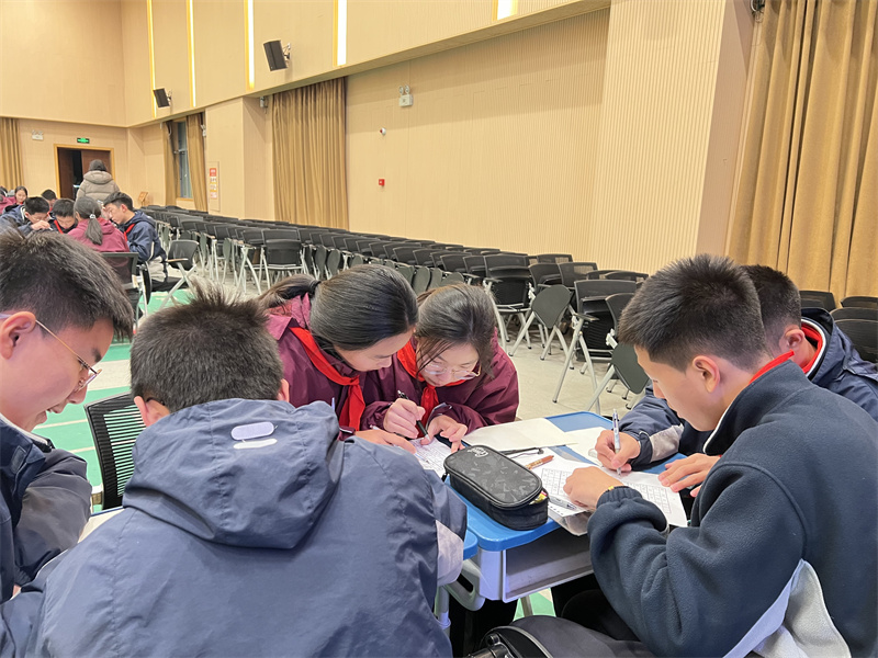 报告厅内,同学们提前摆放好铅笔、橡皮与直尺,有的轻声与同伴交流解题技巧,有的则闭目调整状态,眼神里满是跃跃欲试的期待,等待比赛正式开启。