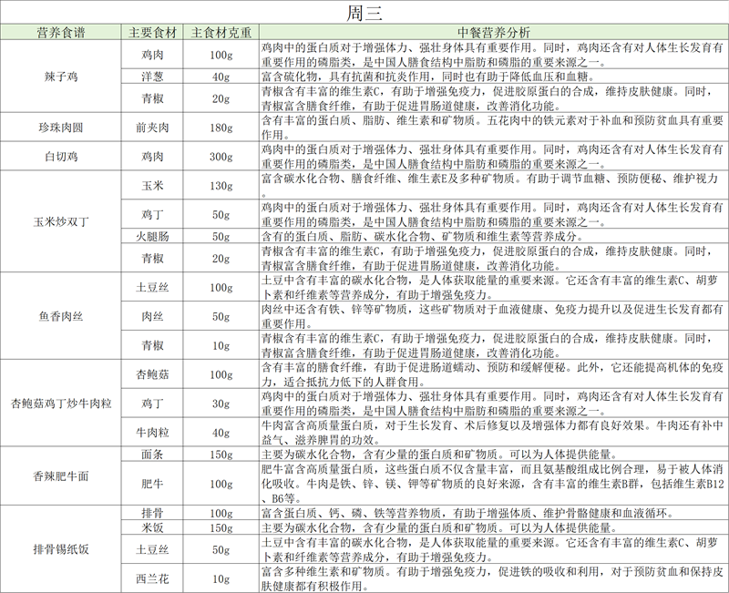 一周食谱