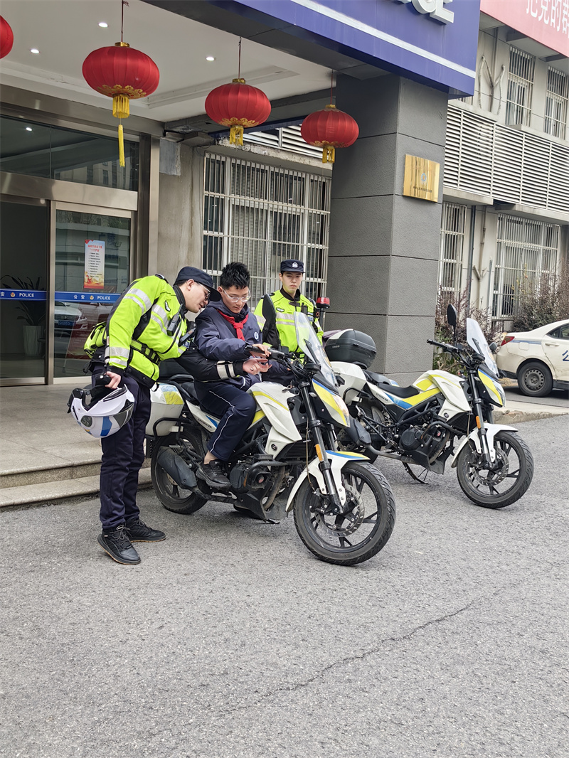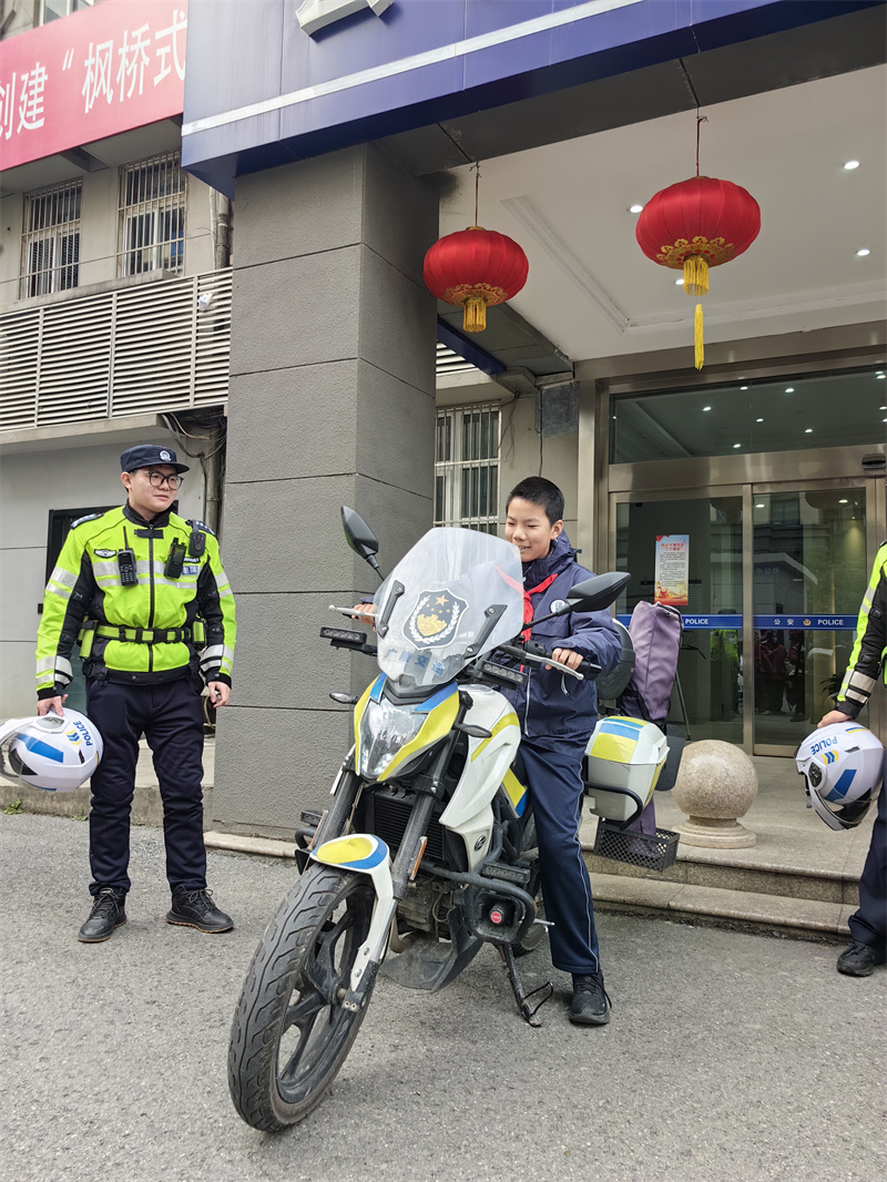 活动伊始,派出所民警为同学们介绍了警用摩托车铁骑的用途与功能。作为现代城市交通管理的"轻骑兵",铁骑摩托车具有机动灵活、快速反应的特点,在日常巡逻防控、应急处突、交通疏导等工作中发挥着重要作用。讲解结束后,部分学生在民警的保护下登上铁骑亲身体验,感受警用装备的威武与专业,现场互动气氛热烈。