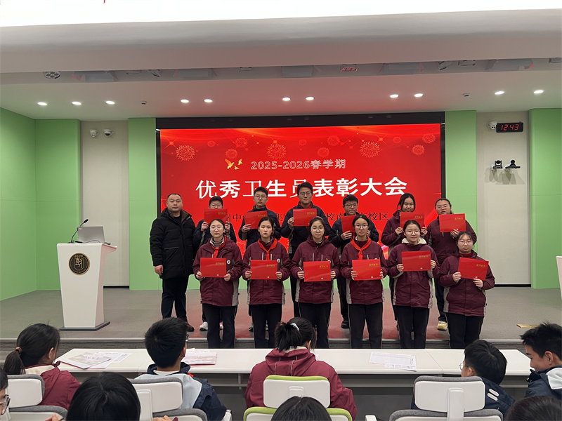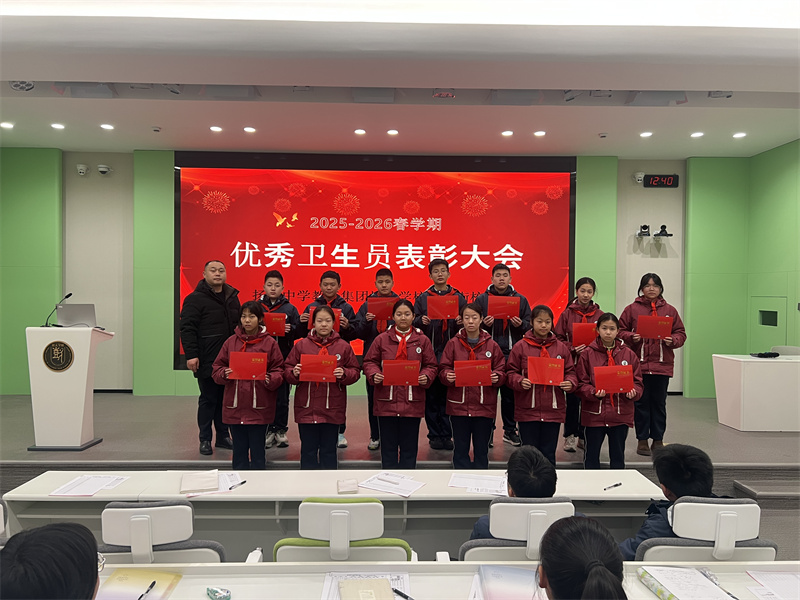 首先,教务处赵全老师为2025~2026学年度第一学期的校级优秀卫生员,颁发荣誉证书,并表彰他们在过去一个学期里对卫生防疫工作做出的贡献。