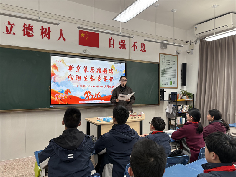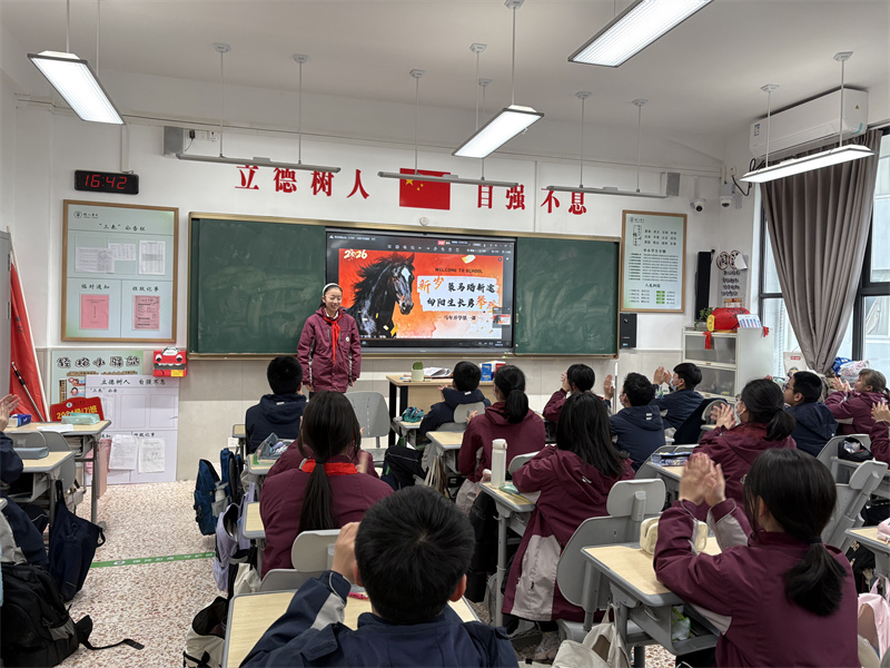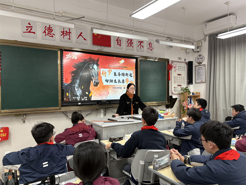 为帮助学生快速收心归位、调适心理状态,筑牢校园安全防线,3月4日上午第二节课,我校初一、初二全体班级以“新岁策马踏新途,向阳生长勇攀登”为主题,同步开展开学第一课主题班会。本次班会融合心理赋能、收心教育、防欺凌排查三大内容,为新学期开好头、起好步。