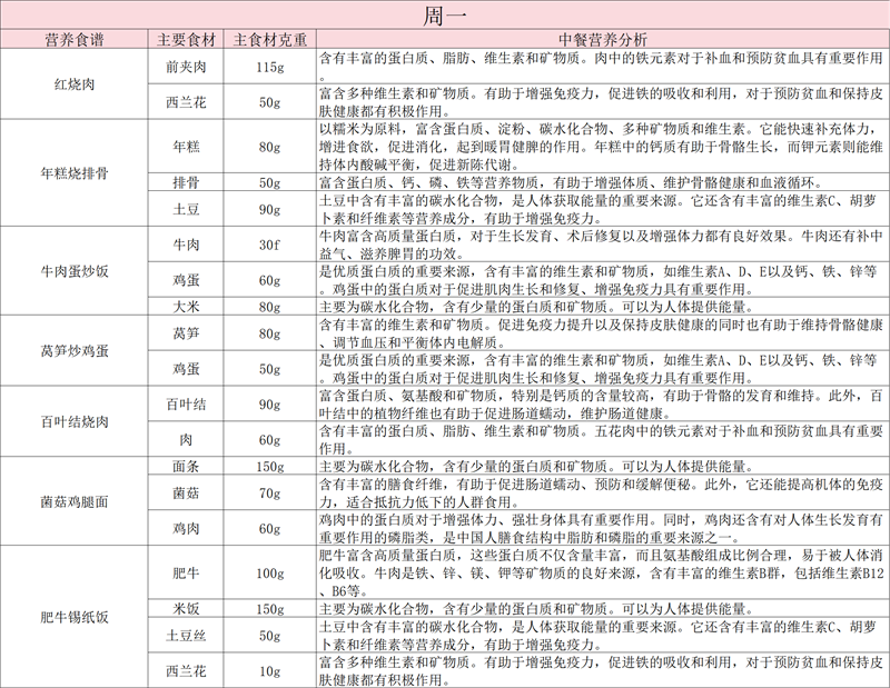 【食堂管理中心】科学搭配膳食 促进健康成长——南门街校区一周食谱营养分析