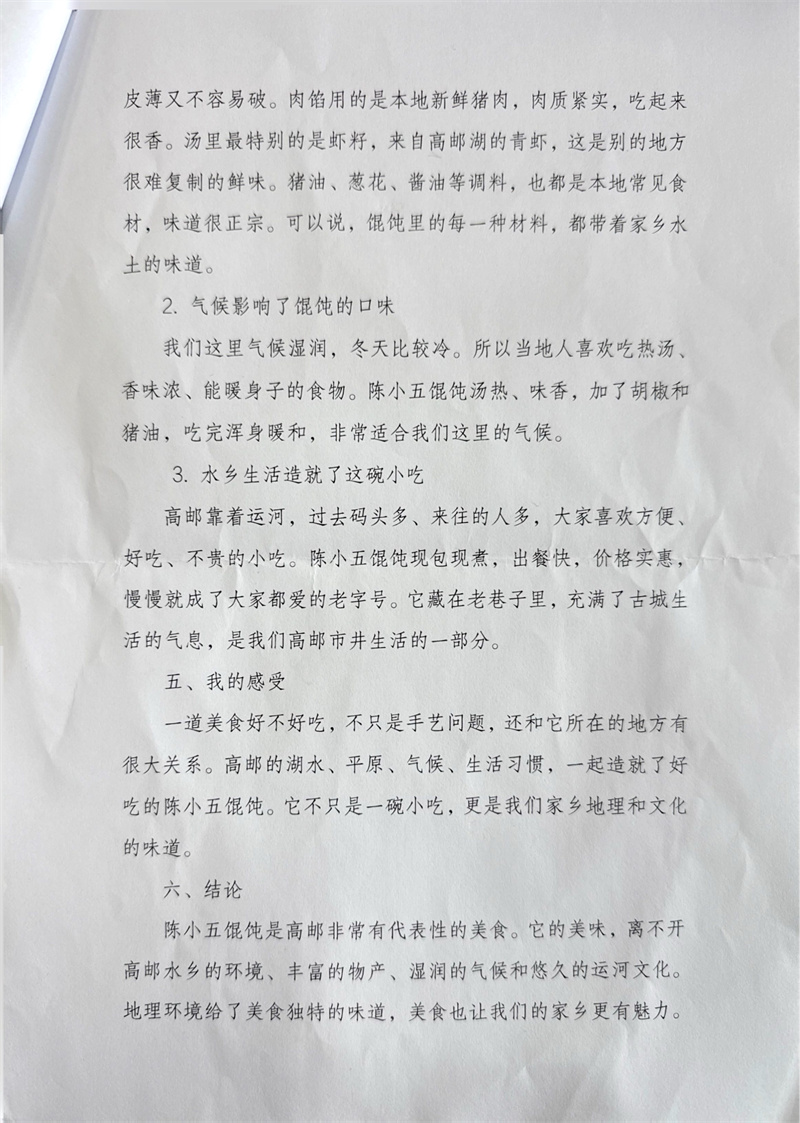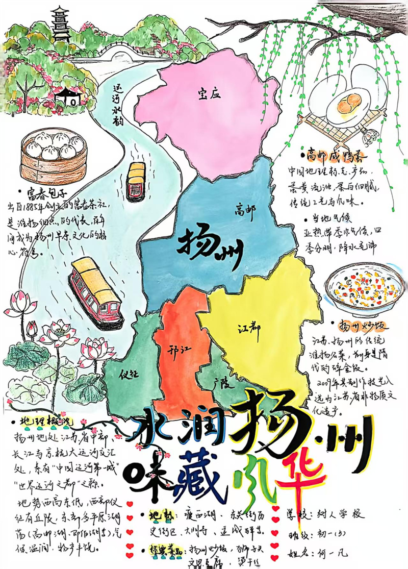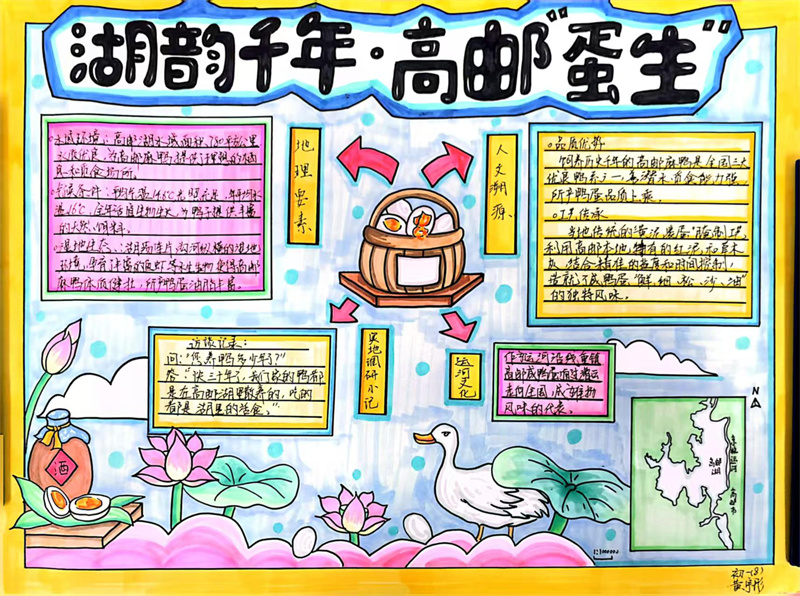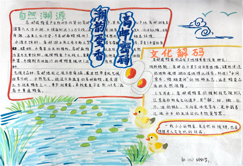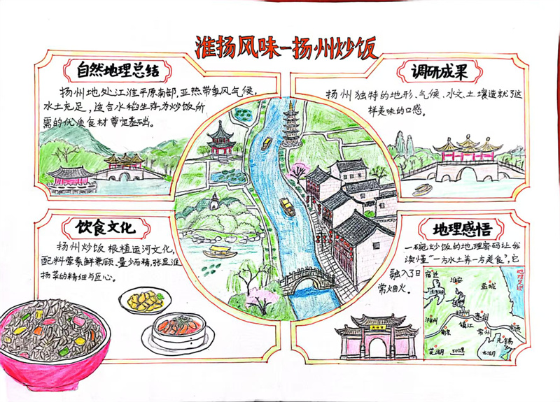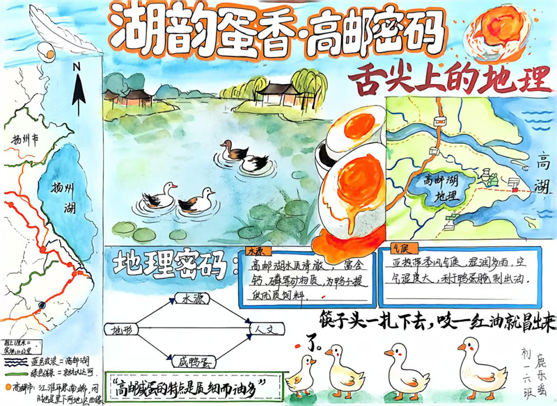 本次提交的作业形式多样,制作精美。一份份精美的手抄报图文并茂,色彩明丽,将淮扬菜系的分布地图、食材与地理要素清晰地呈现在图纸上。一篇篇详实的调查报告则数据严谨、思考深入,展现了同学们出色的探究能力与综合素养。