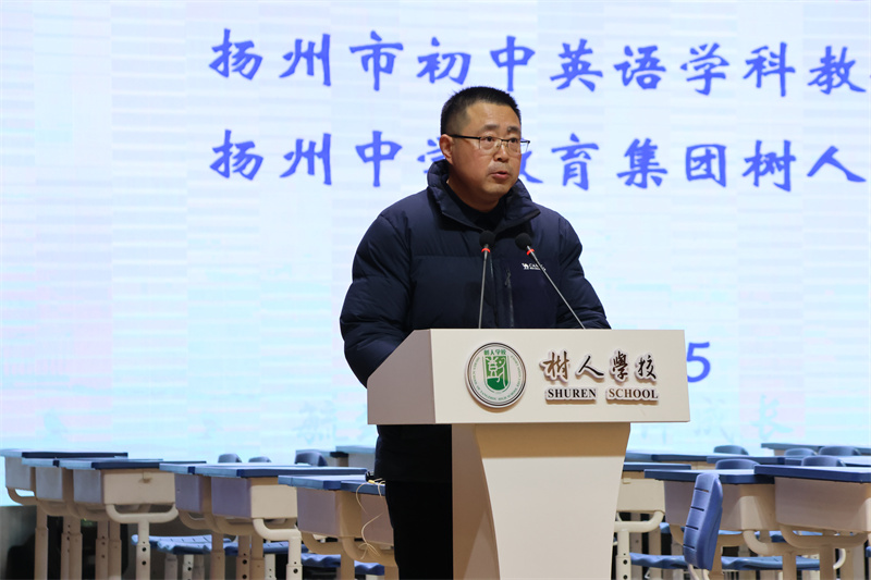 活动伊始,树人学校党委书记唐炜致欢迎辞,对各位专家、教师的到来表示热烈欢迎,并祝贺扬州市初中英语学科教研基地落户本校。他表示,学校将以此为契机,全力助推教师专业成长,打造教研创新“树人样板”,做好服务保障,努力将教研基地建设成为全市初中英语教学研究新高地、教师成长新摇篮。