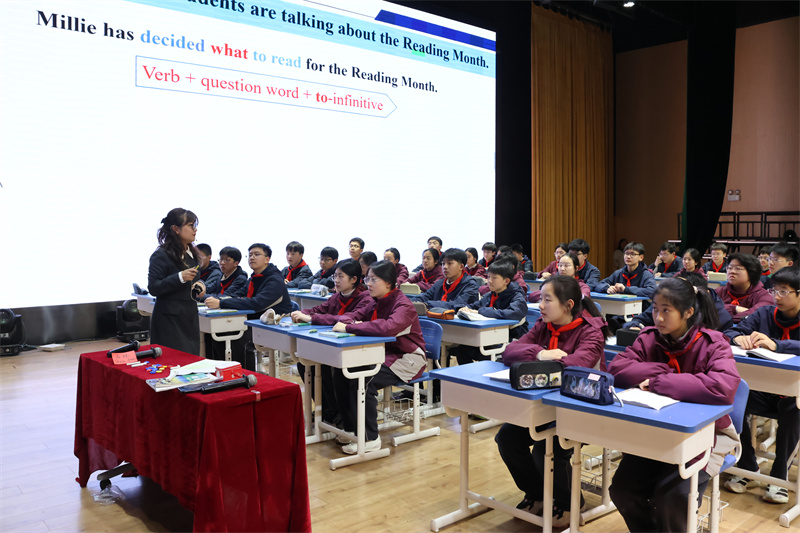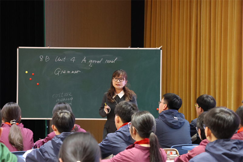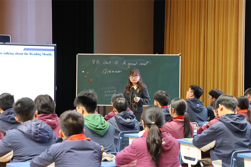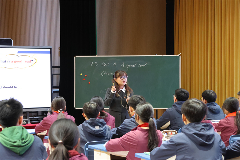 姚嘉老师执教的是Grammar课时,紧扣“做一名好读者”主题,设置“Choose wisely、Think deeply、Share generously、Behave responsibly”四层递进环节,将语法学习与阅读习惯、规则意识、版权教育相融合,实现从“会读好书”到“成为好读者”的素养提升。