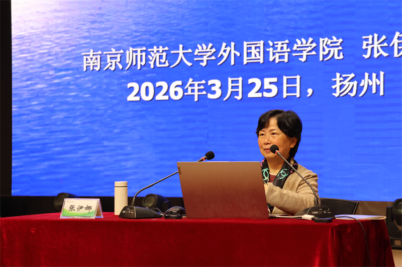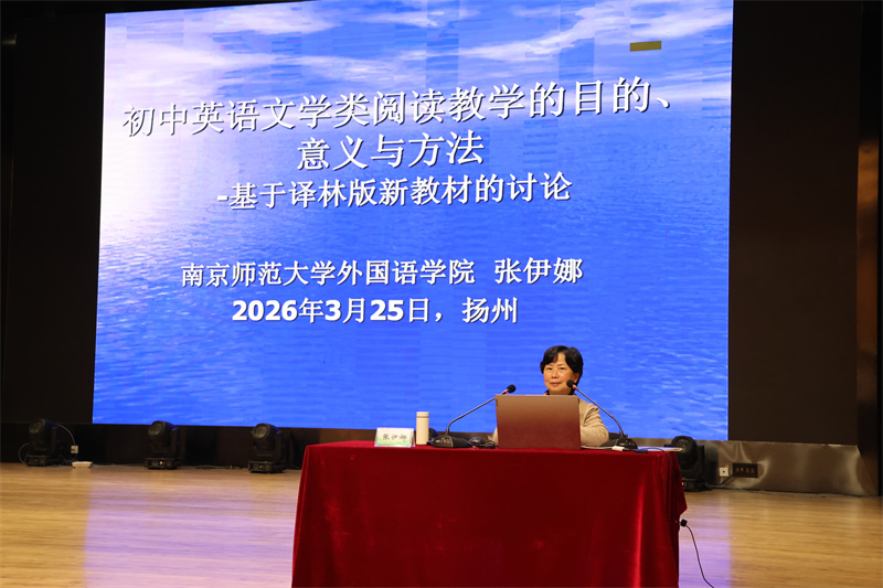 南京师范大学外国语学院张伊娜教授以《初中英语文学类阅读教学的目的、意义与方法——基于译林版新教材的讨论》为题,结合问卷调查数据,围绕“阅读、文学阅读、英语文学阅读”展开论述,阐明其对学生语言学习与心智成长的价值,并结合新教材语篇提出教学指引。