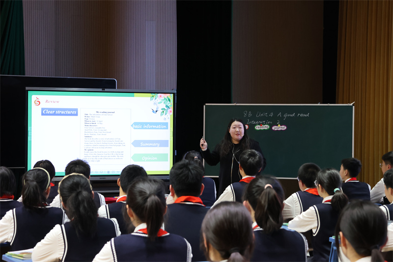 张舒老师执教的Integration II课时,聚焦阅读日志写作,从摘要与观点两个维度提炼写作要领,开展当堂写作、展示交流与标准评价,以评促写,在提升语言能力的同时,教会学生阅读、记录与分享的方法。