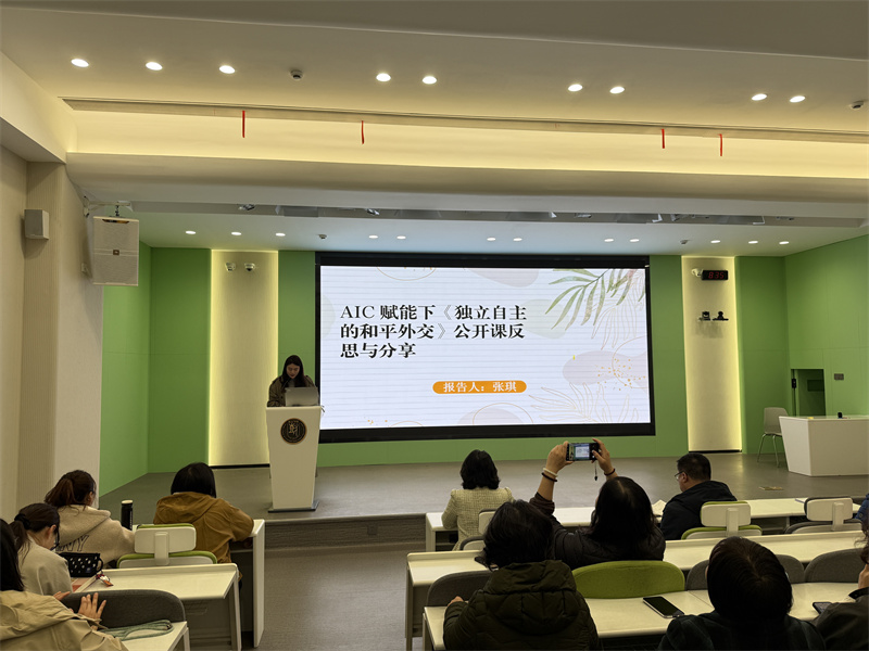 教科室副主任吴小洁老师首先回顾本周重点工作,全面梳理了学校近期的校园活动、教学实践、学生培养、对外交流等方面工作成果与推进情况。在教学实践感悟分享环节,历史老师张琪以鲜活的教学案例为载体,分享了课堂教学中的实践与思考,她以“和”为主线串联教学,课堂氛围活跃,师生互动质量高,并利用AIC课堂诊断系统精准把脉,重新设计课堂。数学老师李野带来《不等式(1)》课堂诊断课例分享,他借助新技术进行课堂教学,并结合AIC深入剖析课堂教学细节,为学科教学优化提供了实用思路。