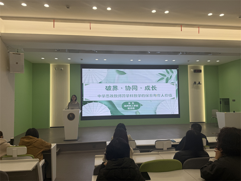 自清讲堂上,政治老师李芳作《破界·协同·成长——中学思政教师跨学科教学的探索与育人价值》的专题分享。如何进行跨学科教学,李老师从“破界·协同·成长”的理念,到“运河思政”的扎实实践,用六步路径把跨学科教学从理念落到了课堂,让我们看到了思政课“活起来”的生动模样。这样的协同,真正实现了知识融通与素养落地,值得学习和借鉴,引发了现场教师的深度思考。