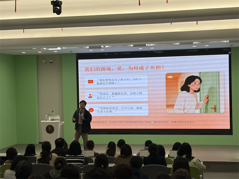 4月11日上午,扬州中学教育集团南门街校区学术报告厅内座无虚席,4月份家长学校活动在这里如期举行。本次活动以"沟通换挡期:青春期亲子沟通实战"为主题,特邀心理教育专家陶新华教授主讲,南门街校区和九龙湖校区的家长共同参加了活动。