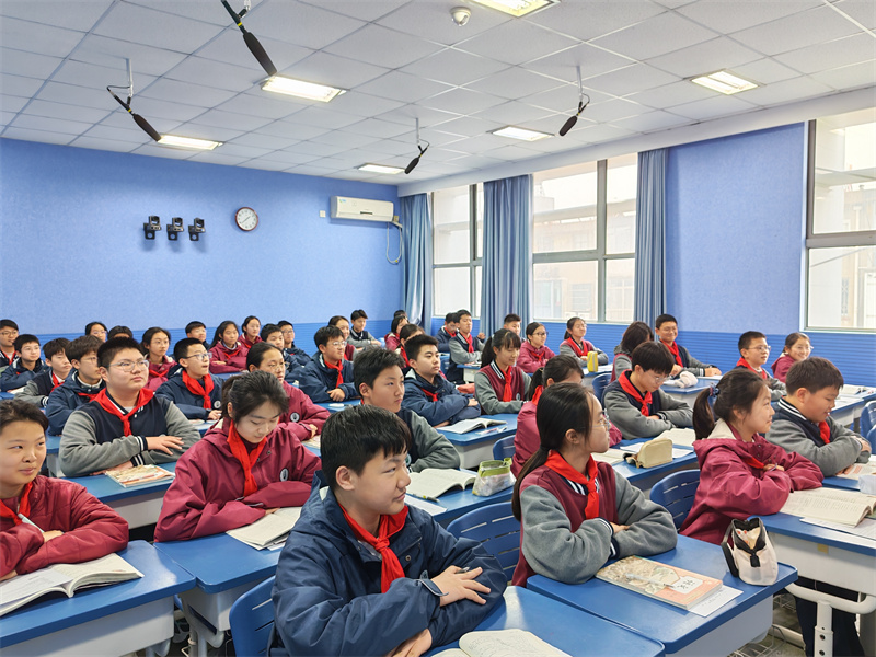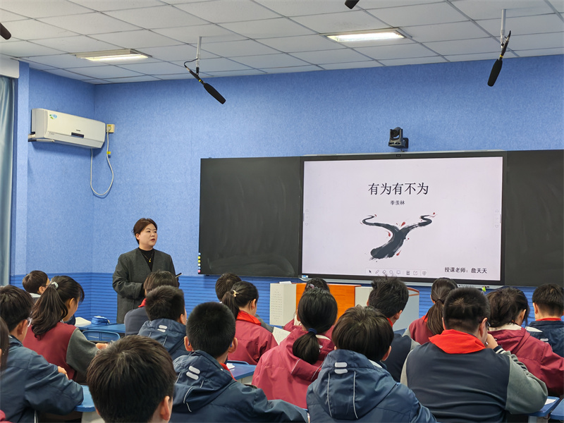 第一课时,詹天天老师带领初一(9)班学生走进《有为有不为》的文本世界。詹老师紧扣“明辨是非、涵养品格”的育人目标,在深度解读文本的同时,巧妙融入心理健康与正向成长教育,引导学生联系生活实际畅谈“有所为,有所不为”的处世哲学。课堂既有语文味,又有人文情,学生在品读与思辨中提升了思维品质,赢得了听课教师的一致好评。
