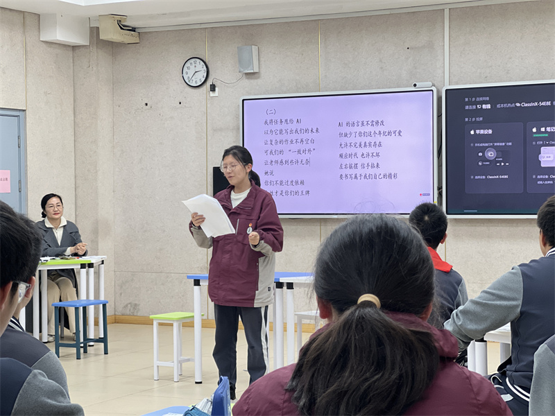 吴敏老师在总结点评中充分肯定了同学们的探究精神与思辨能力,鼓励大家合理利用AI技术,坚守语文学习的本质——在文字浸润与深度思考中不断提升自我。