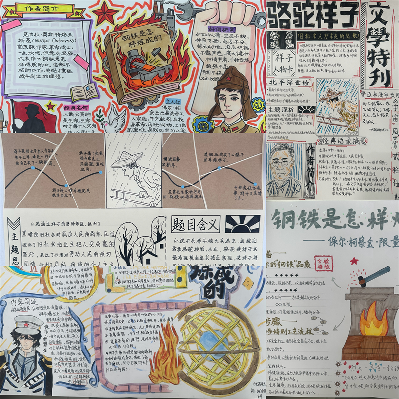 本次春假语文作业,聚焦初一阶段必读经典名著《骆驼祥子》与《钢铁是怎样炼成的》,以手抄报创作为主要形式,鼓励同学们深入阅读文本,自主梳理名著脉络,沉浸式感受经典文学的魅力。同学们需围绕两部名著的核心内容展开创作,既可以梳理小说人物形象、故事情节、主题思想,也可以摘抄经典语段、分享阅读感悟、绘制名著相关插画,将文字阅读与视觉表达相结合,让阅读成果变得直观、生动。