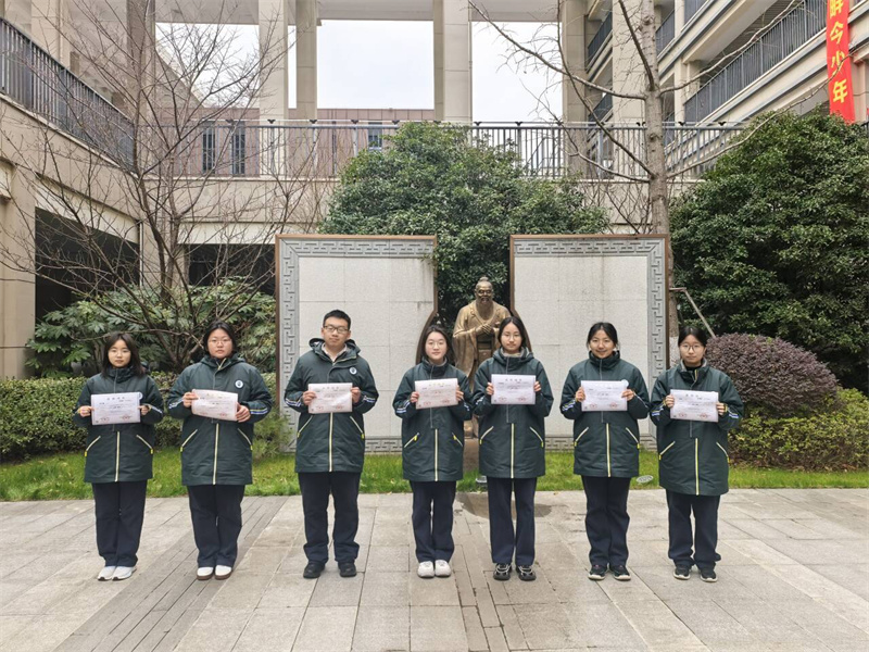 高一年级:李艾琳、朱灏文、孙方雅、叶航铭、崔华倩五位同学获全国一等奖。