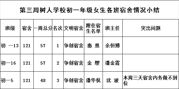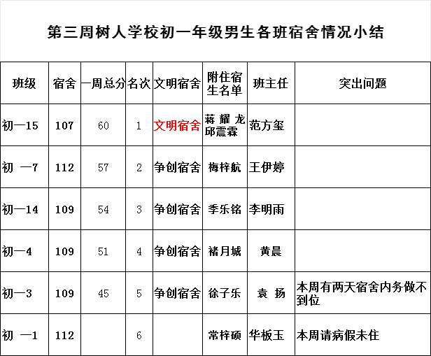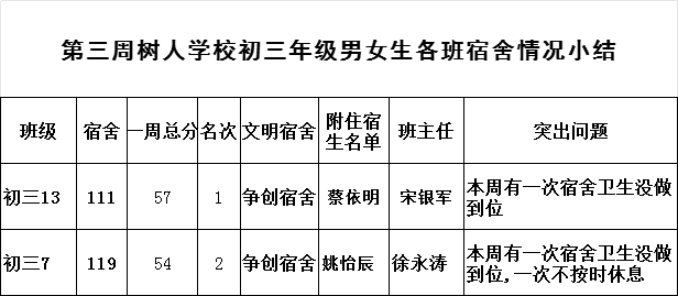 2025年秋学期九龙湖校区第三周各宿舍小结