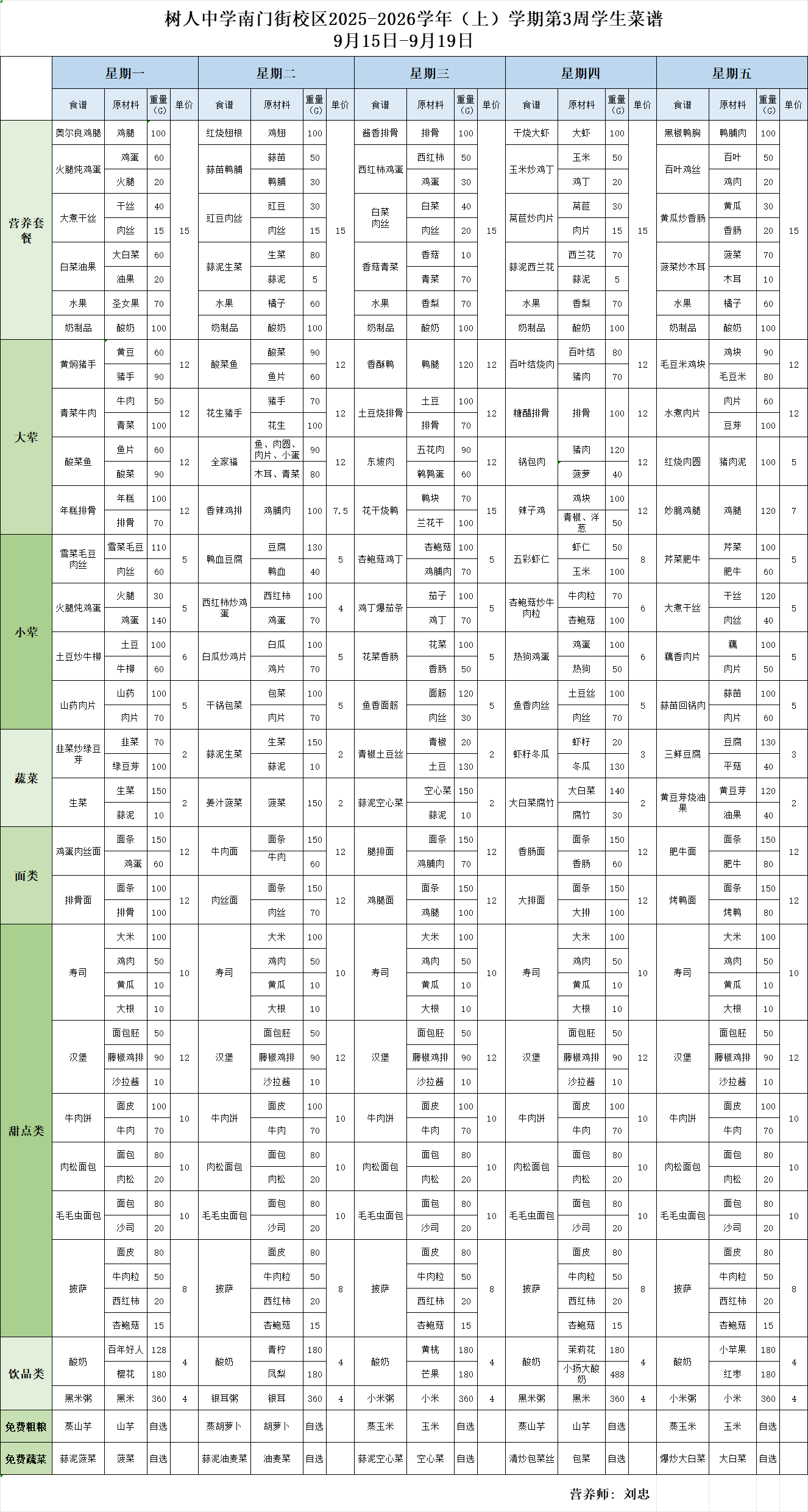 南门街校区2025——2026学年上学期第3周学生菜谱
