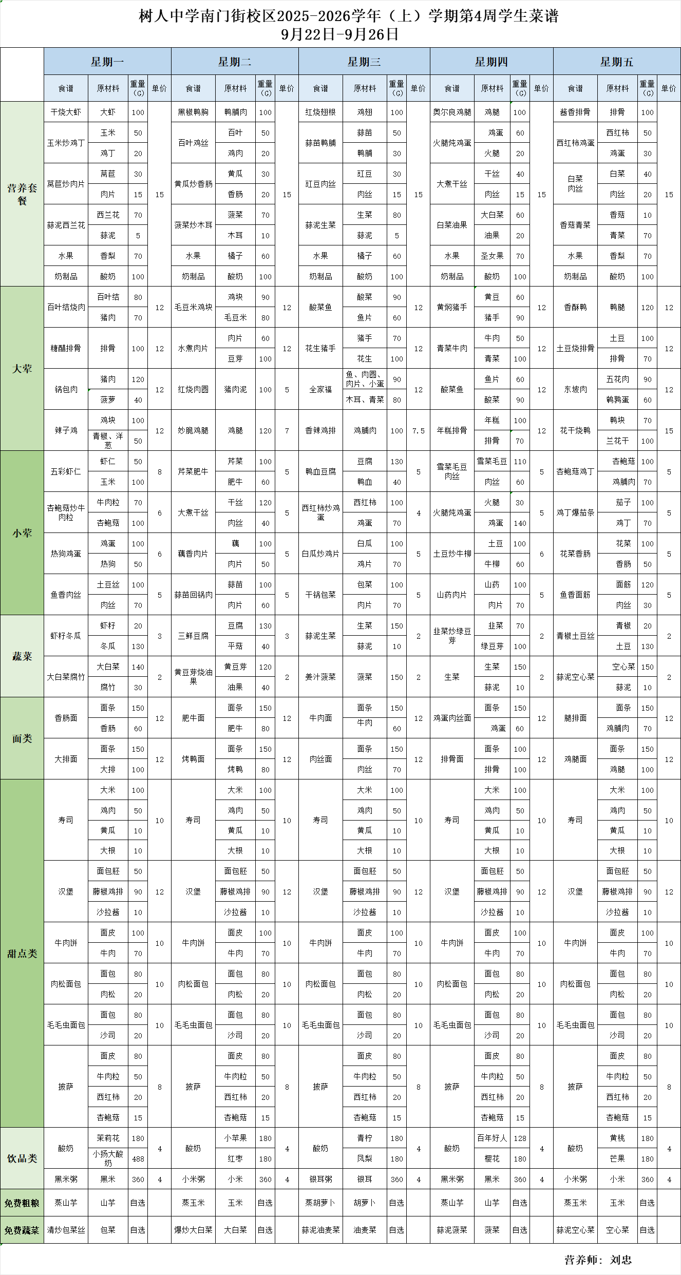 南门街校区2025——2026学年上学期第4周学生菜谱
