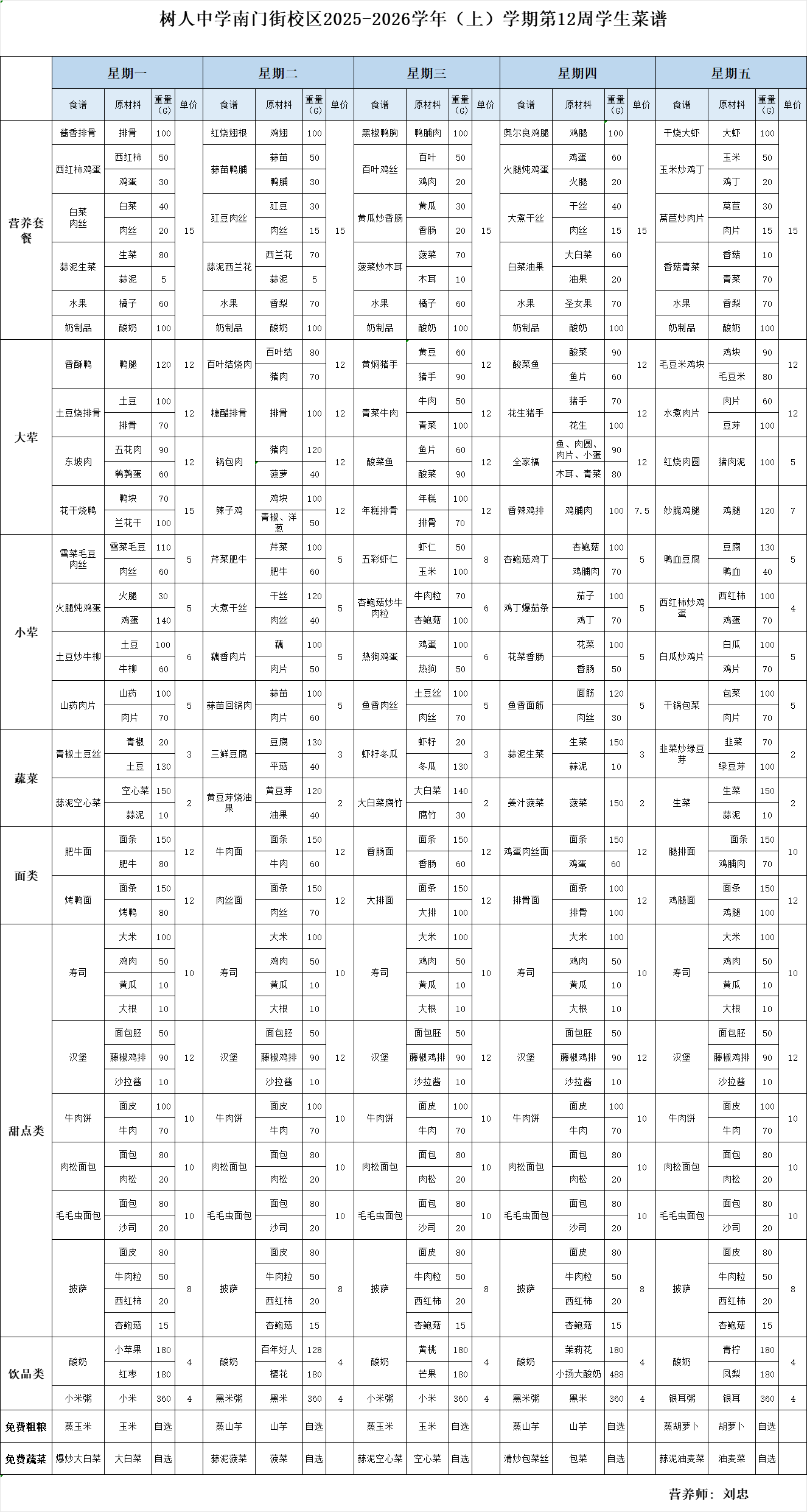 南门街校区2025——2026学年上学期第12周学生菜谱