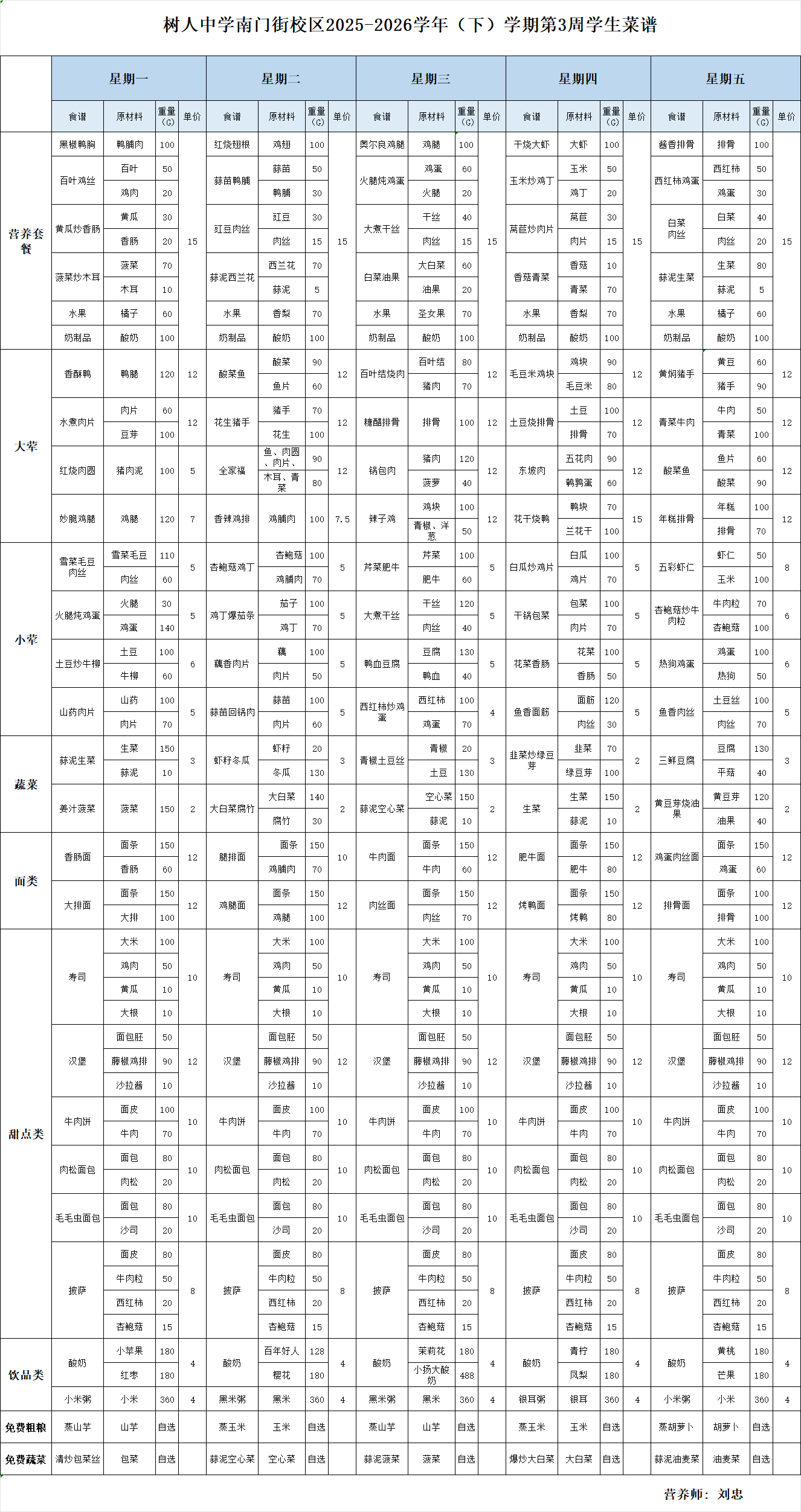 南门街校区2025——2026学年下学期第3周学生菜谱