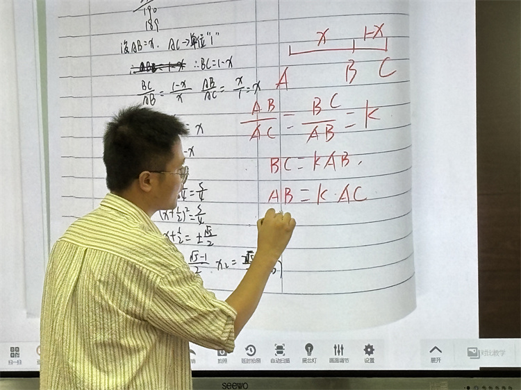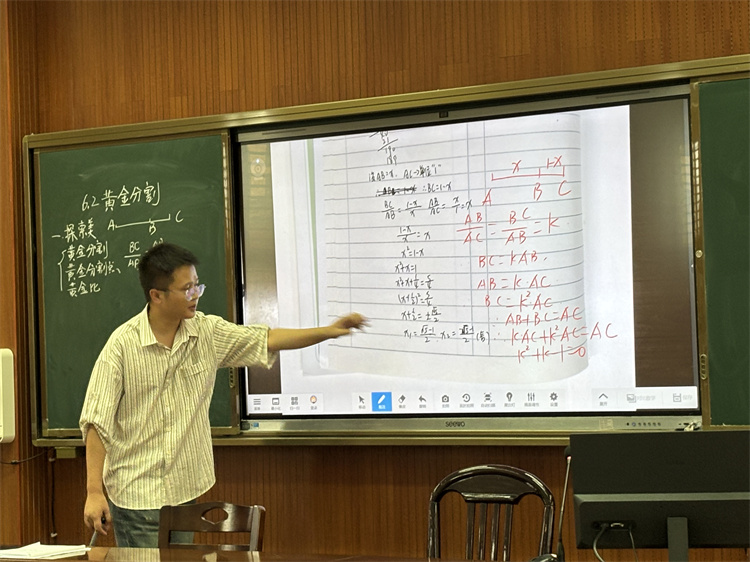 彭中华老师带来一堂《黄金分割》公开课,他以“探索美、应用美、欣赏美”为主线,将数学与生活、艺术交织,从五星红旗到《蒙娜丽莎》,从建筑到自然,让学生在发现比例奥秘中感受数学之美。课堂开放多元,思维碰撞不断,赢得师生一致好评。