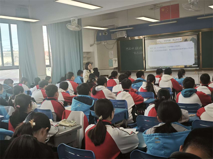 第二节课,田家炳中学金婷婷老师以“神游山水,情寄万物”为主题,整合八年级语文八上第三单元古诗文与现代文教学;朱自清中学叶慧娴老师围绕 “三角形复习”,帮助八年级学生构建几何知识网络;树人中学孙玥老师通过八年级英语八上Unit1 Revision,强化语法应用与话题表达;文津中学刘玉老师聚焦九年级语文非连文本复习,分享“观点的明确与表达”应考策略;树人中学谢婷老师梳理九年级数学“一元二次方程”的“概念 - 解法 - 应用”完整脉络;朱自清中学戴凌婧老师衔接九年级英语九上Unit3语法与写作;田家炳中学徐瑶华老师以生活实例串联九年级物理“机械能 内能”抽象概念;开发区实验中学申艳梅老师则以“‘紫薯变色’之谜”为切入点,让九年级化学知识具象化。每堂展示课均紧扣“学情精准诊断、知识体系深化、思维能力进阶”核心,生动诠释了 “素养导向”的复习新范式。