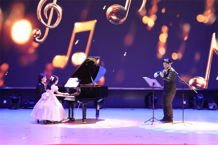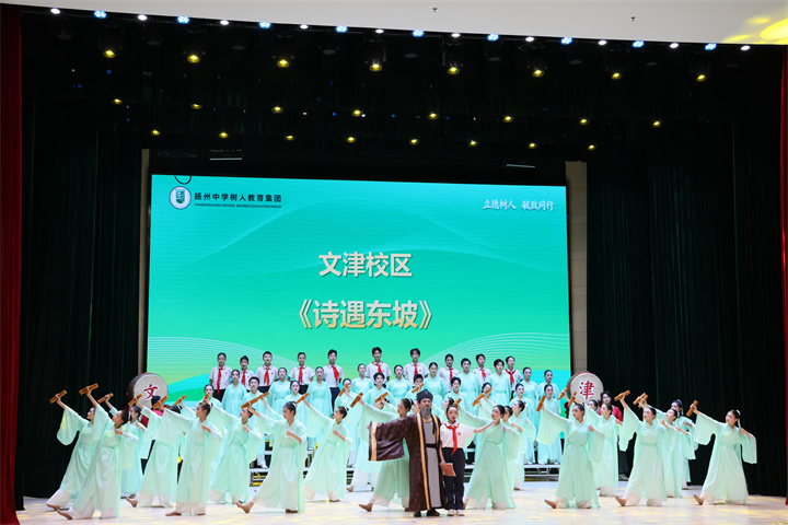 校园的多元魅力在舞台尽情绽放。九龙湖校区的钢琴小提琴二重奏《春天奏鸣曲》如春风化雨,滋润心田;文津中学的情景剧《诗遇东坡》巧妙连接古今,让传统文化在校园中焕发新生;新城校区的古筝齐奏《兰亭序》,则带领观众在弦歌中寻找文化的坐标;文津中学《“文”心铸魂 “津”鼓震天》与南门街校区《Young俱乐部》联袂呈现的武术与体育素养展示,展现了树人少年强健的体魄与自强的精神。这些节目展现了各校区通过课程、活动与空间创新,引导学生亲近经典、传承文化、融合体艺的有效实践,彰显了树人学子的青春活力与生命张力。