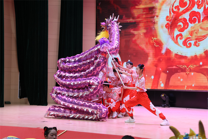 成果展在气势磅礴的开场节目《腾龙呈祥瑞 醒狮送安康》中拉开帷幕。整场演出通过音乐剧、民乐合奏、朗诵、歌舞、武术、情景剧、器乐演奏、合唱等丰富多彩的艺术形式,全面呈现了“四个校园”建设的多维成果与育人活力。