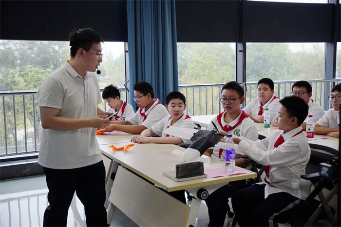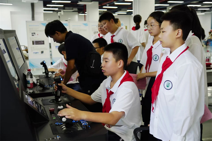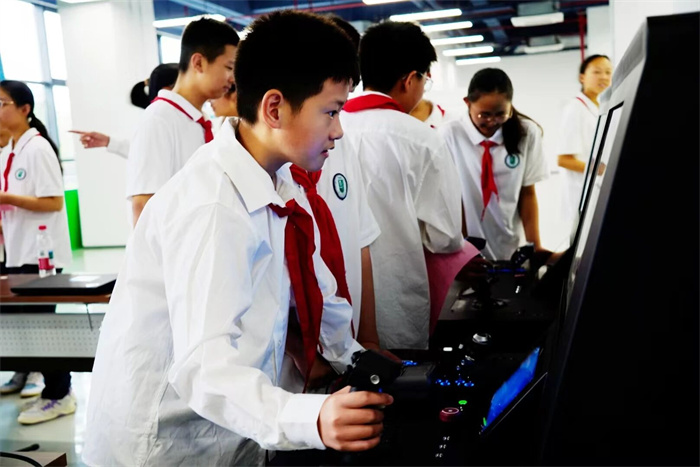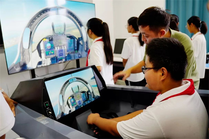 “请大家系好安全带,准备‘起飞’!”在飞行器模拟体验区,同学们按捺不住激动的心情,轮流坐上飞行模拟器。在讲解老师叶涵实讲解飞行控制原理后,大家亲手操控操纵杆,感受升降、转弯的操作逻辑。“方向舵要稳住,不然飞机容易偏离航线!”同学们专注地盯着屏幕,仿佛真的驾驶飞机穿梭在云端。