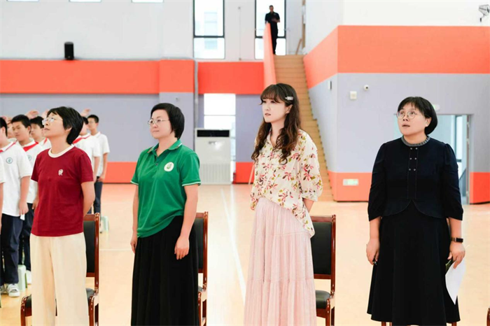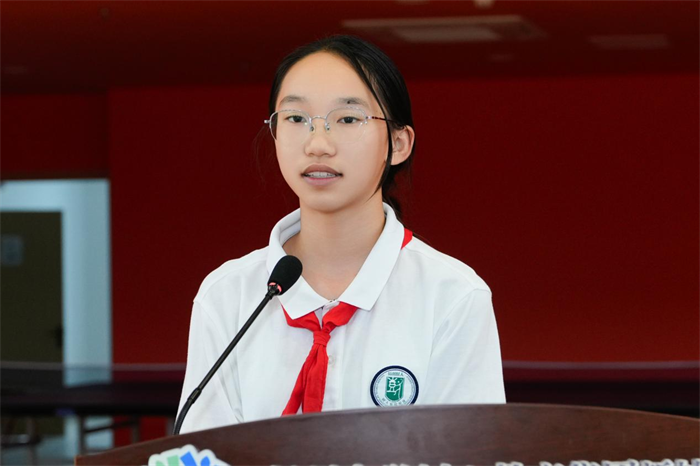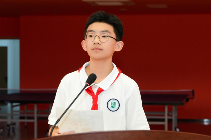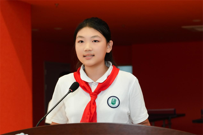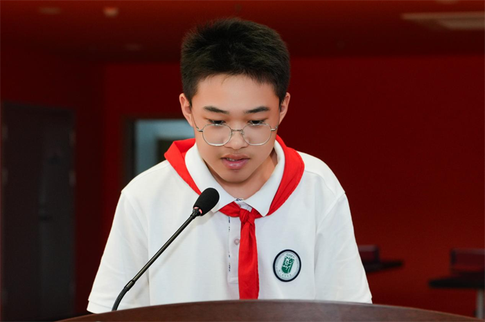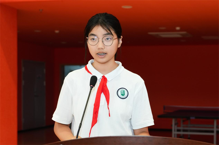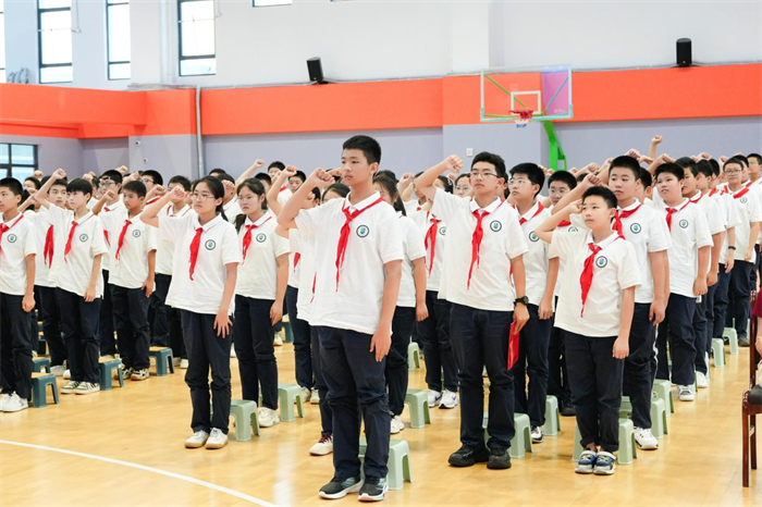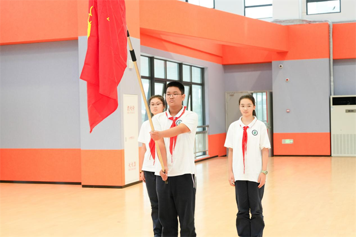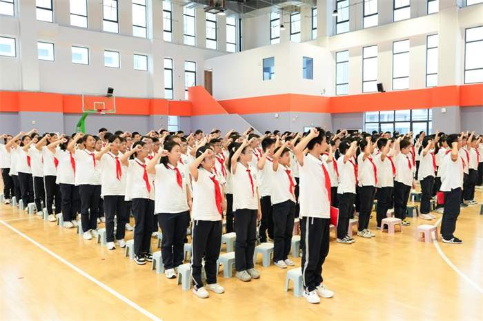 活动伊始,全体师生以最饱满的精神状态迎接庄重时刻。伴随着激昂的出旗曲,大队旗稳步前行,少先队员们高举右手行队礼,目光坚定; 嘹亮的《中国少年先锋队队歌》响彻校园,歌声里满是少年们的理想与担当;树人学校副校长童敏娟、树人学校新城校区督学殷翠云、树人学校新城校区副书记、副校长夏沁宜、七年级全体班主任出席活动,与全体师生共同见证这一重要时刻。