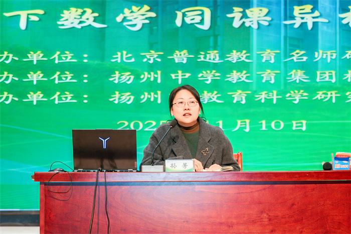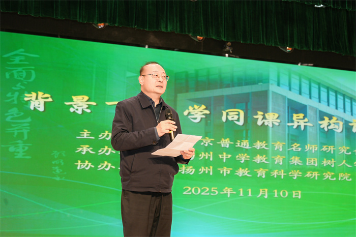 扬州中学树人教育集团总校长唐炜在欢迎辞中,热情分享了学校从扬州中学发源、南门街校区发展到新城校区壮大的三阶段办学历程,对各方嘉宾的到来表示热烈欢迎。他肯定了两堂展示课的精彩呈现,指出南北方教学风格的鲜明特色——北京课堂以学生为中心、互动性突出,扬州课堂注重实际情境创设、扎实务实,这种差异正是跨区域交流的核心价值所在。唐炜校长呼吁全体教师(不限于数学学科)以此次活动为契机,推进课堂改革与“课堂革命”,积极回应AI时代的教学新挑战。