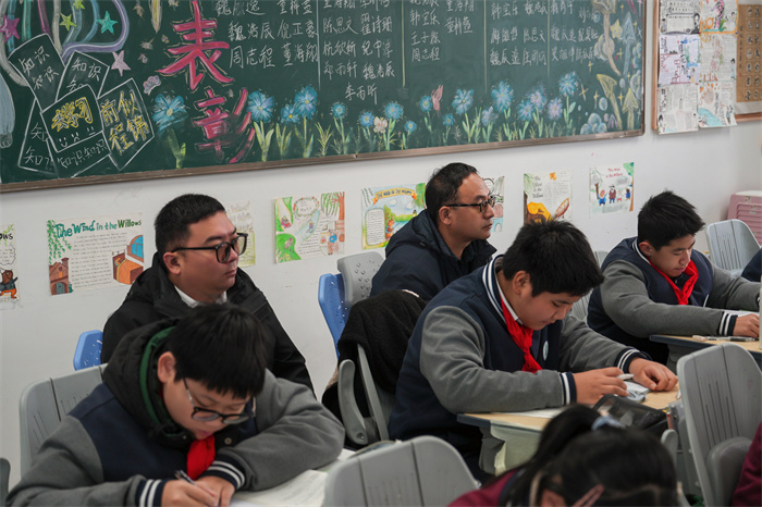 花球操观摩结束后,代表团走进课堂,沉浸式体验新城校区的特色教学。语文课堂上,师生共读经典,情境化教学让文字焕发灵动生机;数学课堂中,趣味互动点燃思维火花,抽象知识变得通俗易懂;历史课堂里,史料与故事交织,带领学生穿越时空触摸历史脉搏。四节风格各异的示范课,生动诠释了新城校区在教学改革中的探索与实践,让代表团近距离感受到高效课堂的独特魅力。