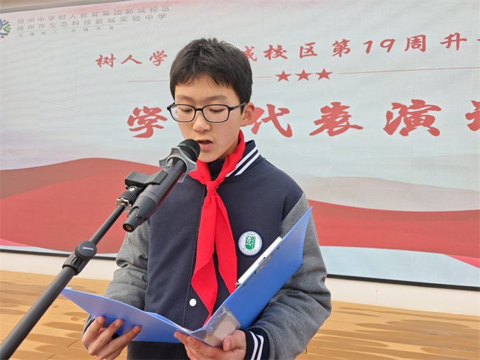 为进一步弘扬民族精神,厚植家国情怀,引导全校学子坚定理想信念,将个人成长融入时代发展浪潮,近日,树人学校新城校区隆重举行以“弘扬民族精神 怀揣梦想前行”为主题的升旗仪式。本次升旗仪式由初一(1)班丁炳楠同学主持,范一博同学作国旗下讲话,国旗班同学担任升旗手与护旗手。