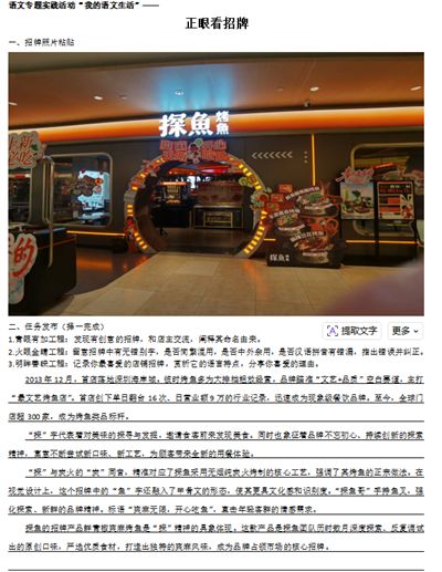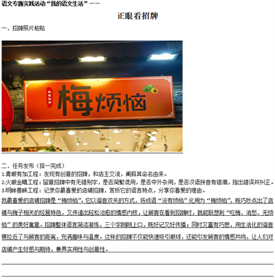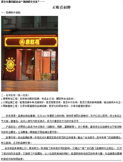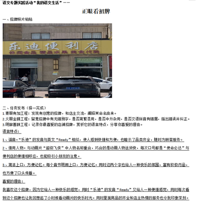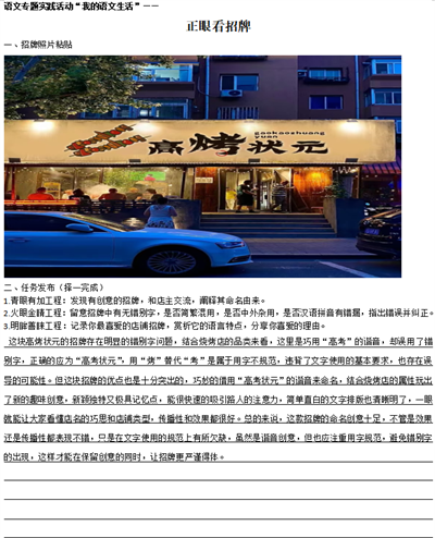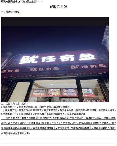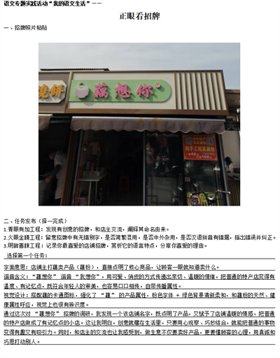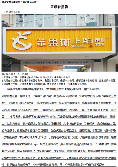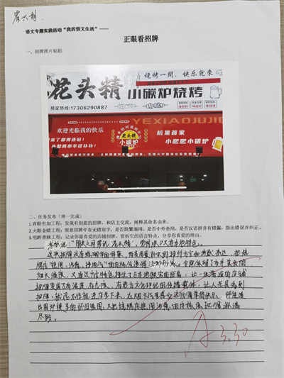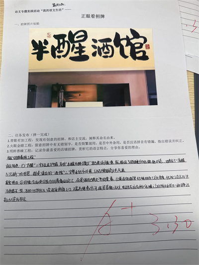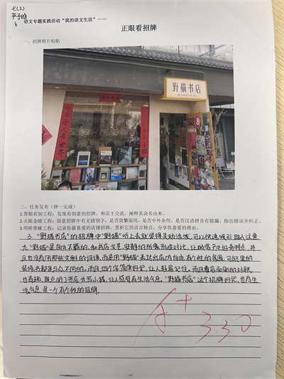 此次“正眼看招牌”实践活动,将语文学习从课本延伸到生活,让学生在真实情境中感受语言的魅力与价值。活动不仅丰富了学生的学习体验,培养了实践能力与创新意识,更让学生深刻体会到“生活处处有语文”的深刻内涵,为今后的语文学习奠定了坚实基础。